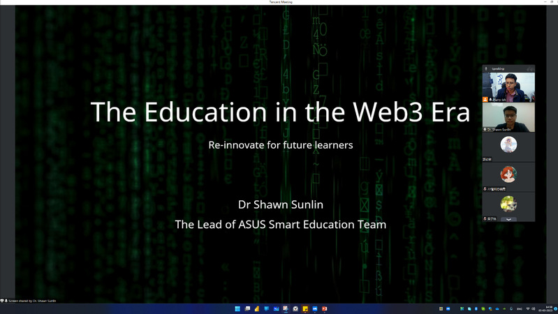 Dr. Sun-Lin shared the newest trends in digital education, such as e-learning and e-teaching with emerging technology. Based on the analysis and observation of the trends, an ideated framework of Web3 education was presented, covering learning, teaching, management, and extended application dimensions. The possible future development and opportunities for education-related institutes, industries, and individuals was also discussed at the end of the talk.