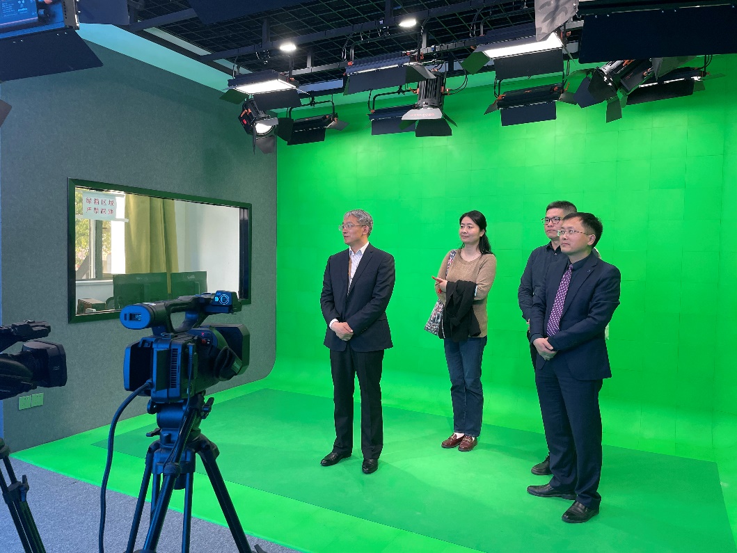 After the seminar, Zhu Chunlin and his party visited the newly renovated Yixing Building of our university and experienced the teaching application scenes of naked-eye 3D, interactive seminars, virtual play and other special intelligent classrooms.