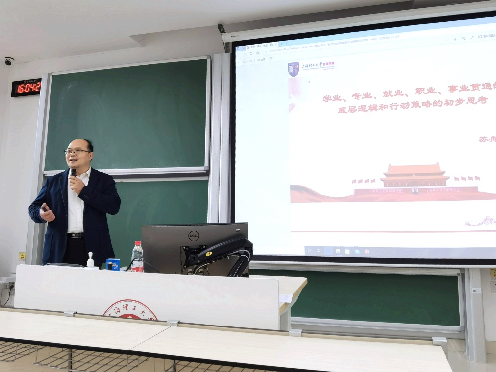 Focusing on the theme of the underlying logic and preliminary thoughts on action strategies for the integration of education, profession, employment, occupation and career, Su Zhou first analyzed the unprecedented changes in the world landscape in the new era and pointed out that on the way to comprehensively promote the great rejuvenation of the Chinese nation, young people should have a blueprint and path in their minds, goals and tasks in their hearts, missions and responsibilities on their shoulders and strategic resources in their hands. Combining the stories of the 13 delegates of the First National Congress of the Communist Party of China and his own personal experience in studying, he elaborated that personal development is closely related to the future of the country, and that one's ideal career should be combined with the fate of the nation.