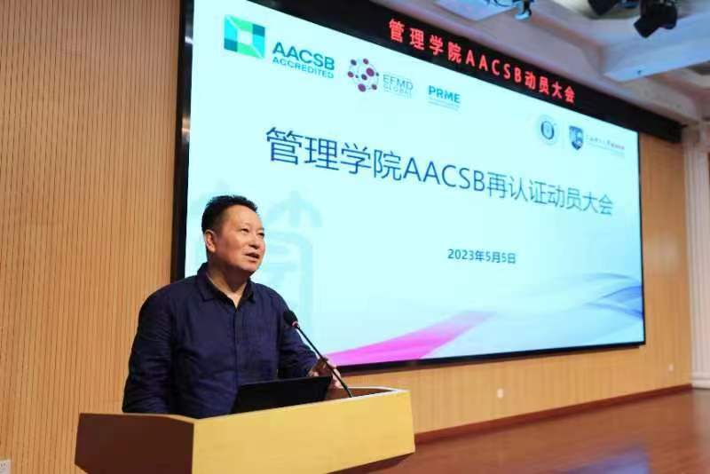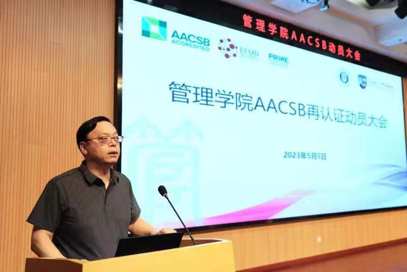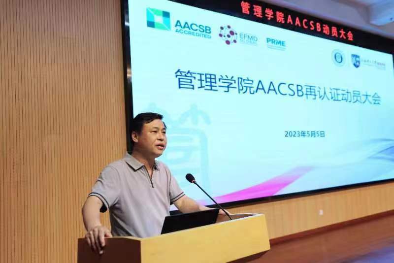 In preparation for the upcoming on-site evaluation of AACSB re-certification, on the afternoon of May 5th, the School of Business held an AACSB recertification mobilization meeting in the first conference room on the fifth floor of the Business School Building A. Members of the Party and government leadership team of the School of Business, as well as representatives of teachers and students who participated in the symposium, attended the meeting. The mobilization meeting is chaired by Vice Dean He Jianjia.