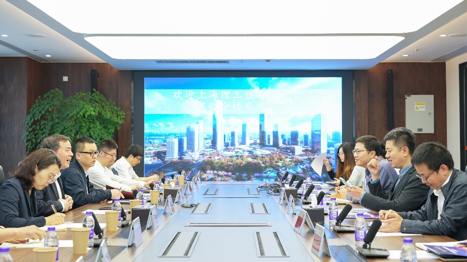 At the meeting, Zhu Lili welcomed the visit of University of Shanghai for Science and Technology and introduced the overall planning and development concept of the “Seven Golden Flowers” region of the group, as well as the future development of the automotive industry. He stated that in the future, we can strengthen cooperation between industry, academia, and research in three stages, actively responding to the call of the country and Shanghai for integration of industry and research. In the first stage, we can deepen cooperation in the fields of smart transportation and big health; In the second stage, jointly explore the mutual empowerment mechanisms of education, technology, and industry; In the third stage, promote deep cooperation in standard formulation, scientific research, talent cultivation, and achievement transformation. He hopes that both sides can start off from the “Golden Central” of Pudong New Area and jointly create a benchmark for the integration of industry, academia, and research through cooperation. The relevant person in charge of the Investment Promotion Department of Jinqiao Group introduced the strategic layout of land development, infrastructure construction, investment attraction, industrial development, and functional support, as well as the core development concept and cultural atmosphere of the group. The subsidiary Jinqiao Intelligent Connected Vehicle Development Co., Ltd. focuses on introducing the five major intelligent connected vehicle application scenarios that the group focuses on building.