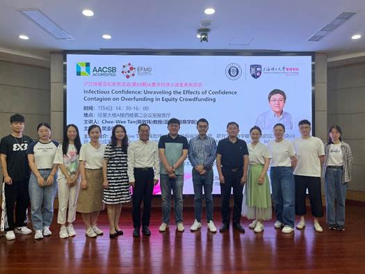 On the afternoon of July 4, Professor Chen Zhiwei of Copenhagen Business School held an academic lecture for teachers and students of our school, entitled Influential Confidence: Unraveling the Effects of Confidence Contagion on Overfunding in Equity Crowdfunding. This lecture is part of the series of activities of the Hujiang Economic Management Forum (the 63rd) and the Digital Economy Lecture Hall Series. It was organized by the Doctoral Program of Management Science and Engineering of the Business School and the E-commerce Development Research Institute of USST. The lecture was presided over by Professor Fan Chongjun of our school.