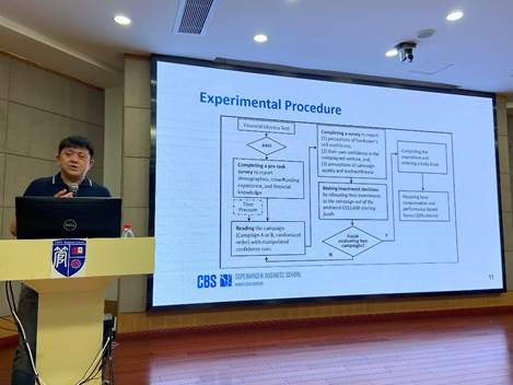Chen Zhiwei first introduced the definitions of equity crowdfunding and excessive financing, and used Panda TV as an example to introduce the factors that affect the excessive financing behavior of equity crowdfunding platforms. He constructed a research model showing that confidence cues in fundraising project materials can be a key driver of overfunding.