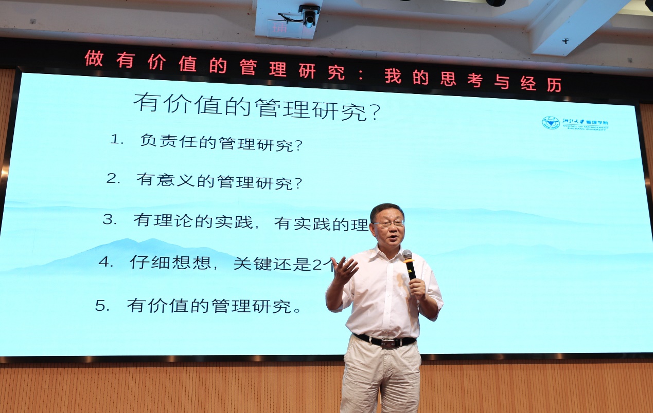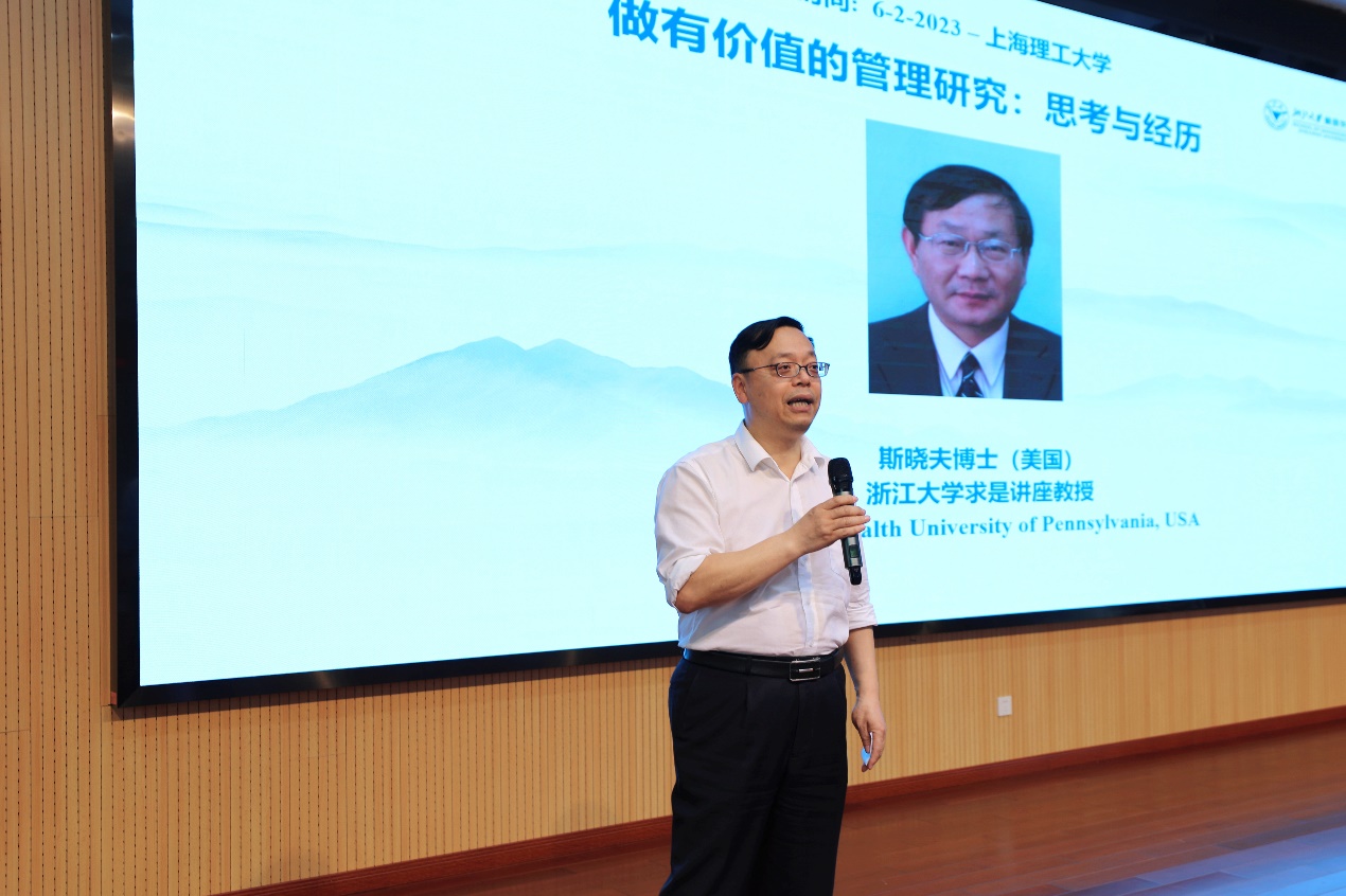 On June 2nd, 2023, Si Xiaofu, professor of QiuShi Lecture of Zhejiang University, gave a lecture entitled "Doing Valuable Management Research: My Thinking and Experience" for teachers and students of our school. The lecture was presided over by Zhao Laijun, dean ofthe Business School, and more than 300 teachers and students attended the lecture.
