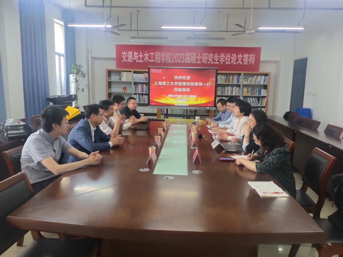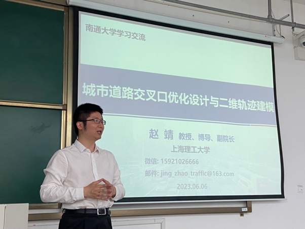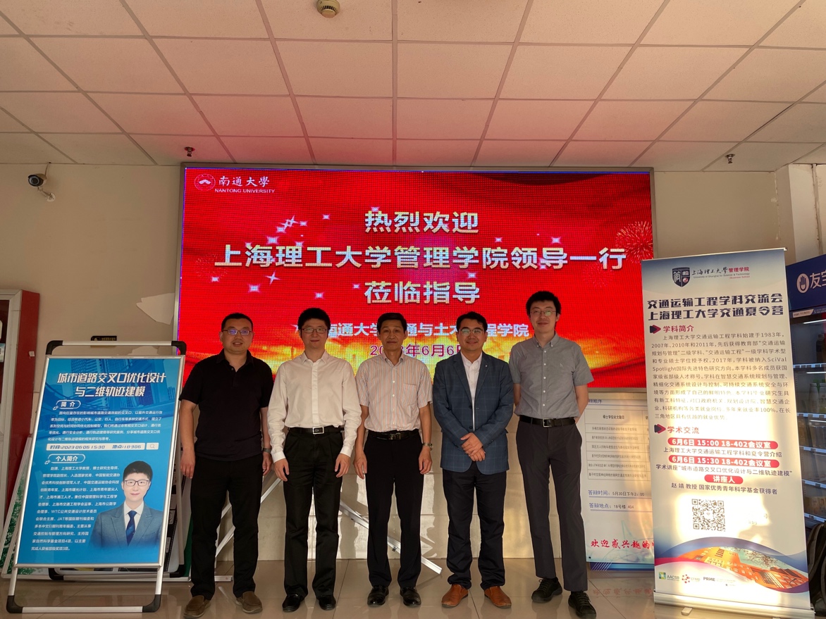 Han Yin, the leader of the transportation engineering discipline of USST, led a team to the School of Transportation and Civil Engineering of Nantong University(NTU) for exchange on June 6th, 2023. Zhao Jing, vice dean; Liu Weiwei, director of the Department of Traffic System Engineering; Yao Jiao, secretary of the Party branch; Wang Jiawen, deputy director of the Departmentof Business School, participated in the event.Han Yin and his delegation held a lecture on the Transportation Summer camp of USST in NTU to fully publicise the enrollment of graduate students in Transportation Engineering at our university and also discussed the latest researches progress in the field of transportation and the cooperation between the two universities.Shi Quan,vice president of NTU and dean of the School of Transportation and Civil Engineering; Zhang Lili, secretary; Chen Yan,deputy secretary; Shao Yeqin, vice dean; Chen Min, vice dean; Gao Ruifeng, director of the Department of Intelligent Transportation System and faculty representatives of the School of Transportation and Civil Engineeringparticipated in the event.