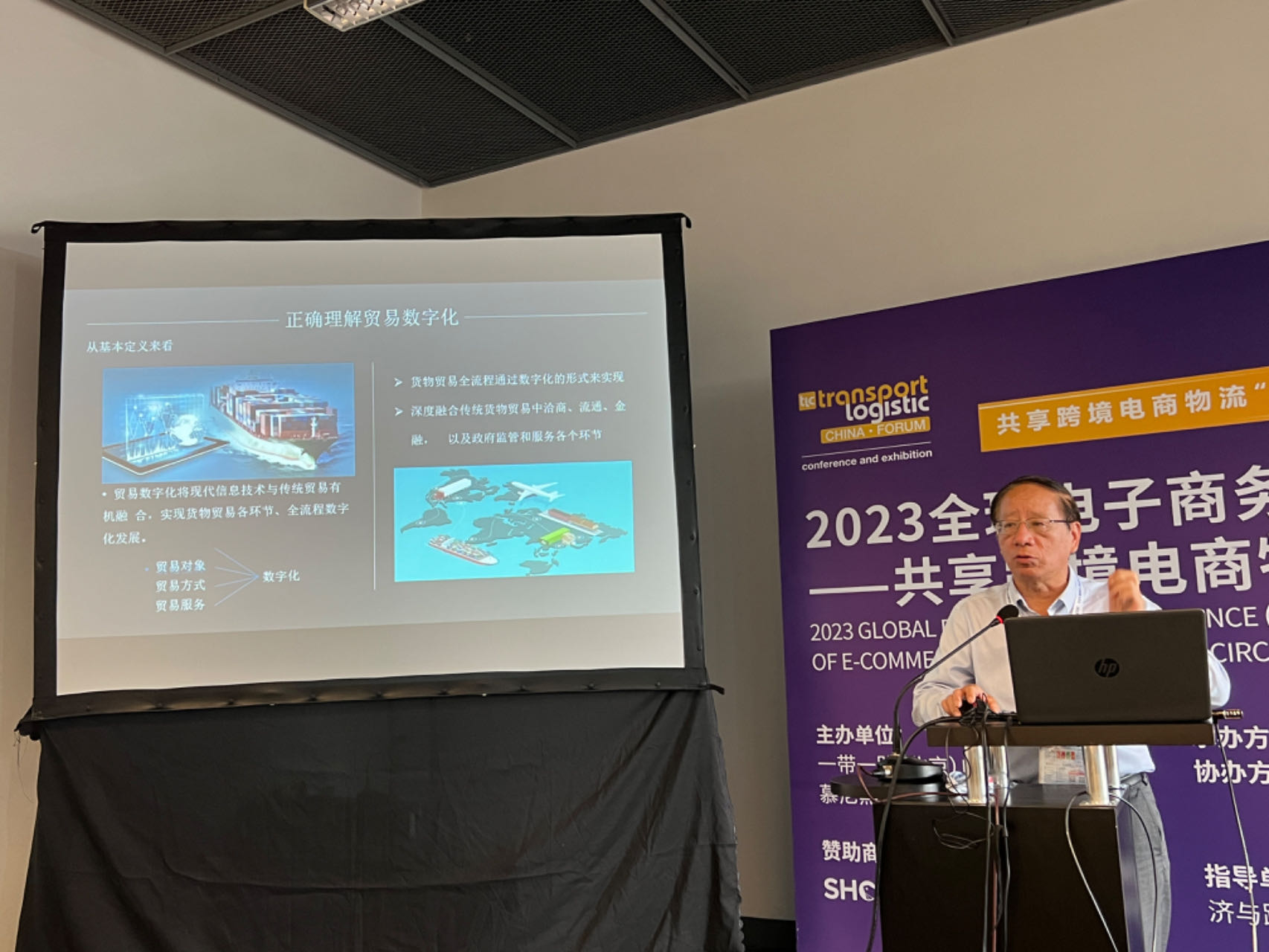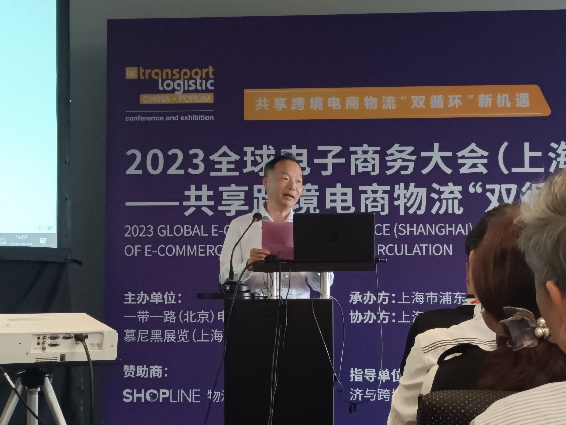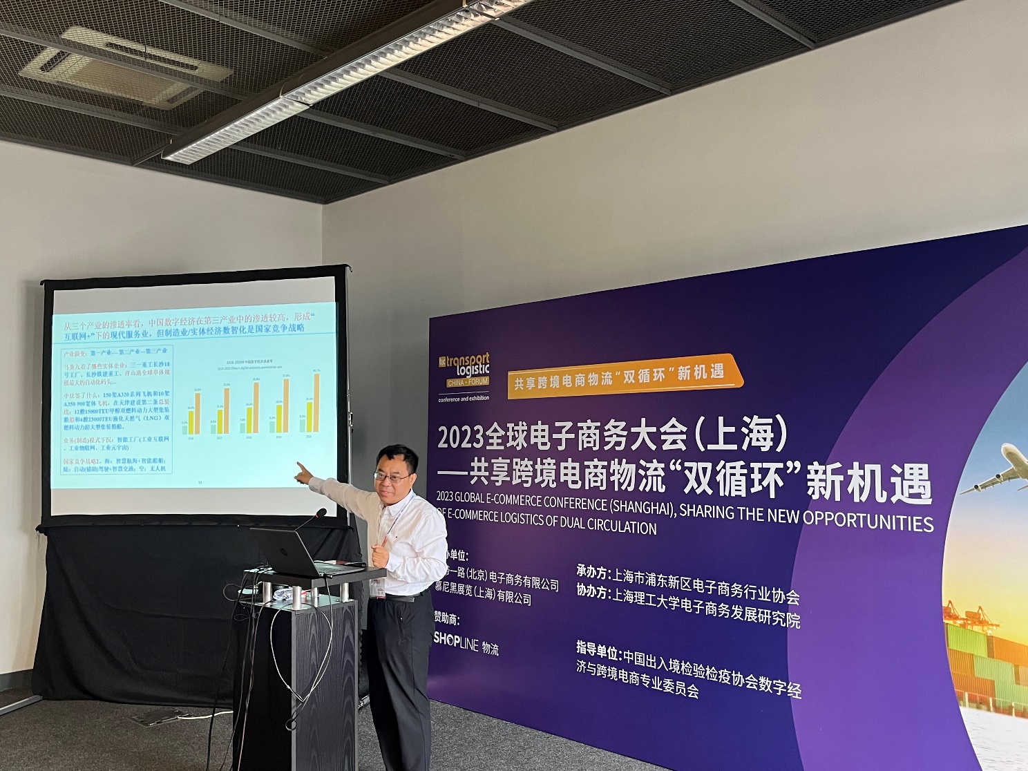 The forum was held in Conference room N1-M40 of Transport logistic China on June 15th, 2023. Huang Yue, Secretary-General of Shanghai Pudong New Area E-commerce Association, Prof. Fan Chongjun, dean of E-commerce Research Institution of USST. Mr Feng Jie, President of Shanghai Sea Chamber of Commerce; Mr Liu Xiaofeng, overseas logistics solutions expert of Shopline Logistics; Ding Yijun, general manager of Shanghai Qixiang Supply Chain Management Co., Ltd., Mr Wang Yiming, senior consultant of Shanghai Joysun Logistics Co., LTD, visiting Prof. of Shanghai University of International Business and Economics, Liu Dawei, general manager of Yangoo Cross-border Business Compliance Platform, Prof. Yao Dawei, managing director of China Society of Logistics, and vice president of Shanghai Sipo Polytechnic, were invited to deliver reports as keynote speakers in turn.