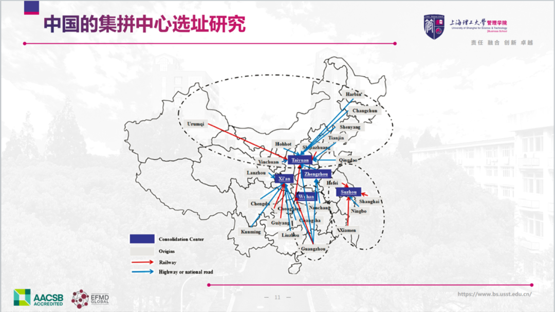 So how to solve the problems in the development of the CR express? We can think from the following three aspects: How to design the inbound and outbound consolidation centres? Second, how to design the consolidation networks, the consolidation centres range, and the consolidation capability? Third, how to optimise the transportation paths when the consolidation network is determined?