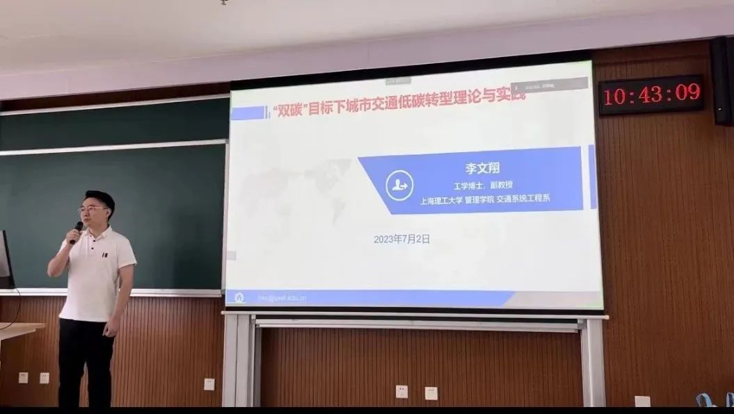 Associate Prof. Li Wenxiang gave an academic lecture on "Theory and Practice of Low-carbon Transformation of Urban Transportation under the Goal of 'Dual Carbon'". Li Wenxiang first introduced the research background and essence of urban low-carbon transportation and then introduced the theory and practice of urban low-carbon transition from the perspectives of urban transportation carbon emission calculation and evaluation, shared traffic management decision-making and optimisation regulation, and transportation carbon trading mechanism innovation and application based on his research, to help participants understand the sustainable development direction of urban transportation.