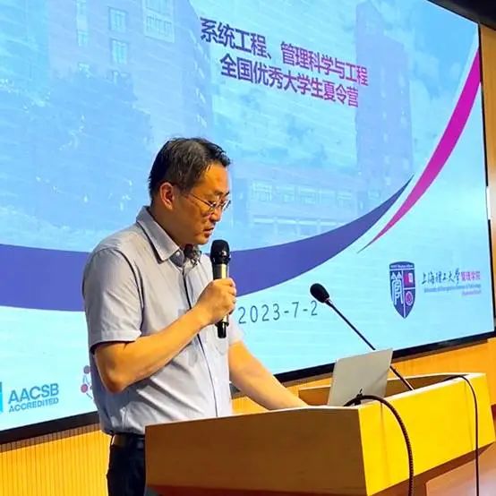 On July 2nd, 2023, the 2023 Summer Camp for National Outstanding Undergraduate Students of System Science Discipline of the University of Shanghai for Science and Technology (USST) was successfully held. Prof. Zhang Zheng, vice dean, Prof. Gao Yan, head of the first-level discipline, Pro. Gu Changgui, director, associate Prof. Liu Yuanhua, secretary of the Party branch, Dr Zheng Yu of the Department of System Science of Business School,and other outstanding undergraduate students participated in the activity, which was hosted by Liu Yuanhua.