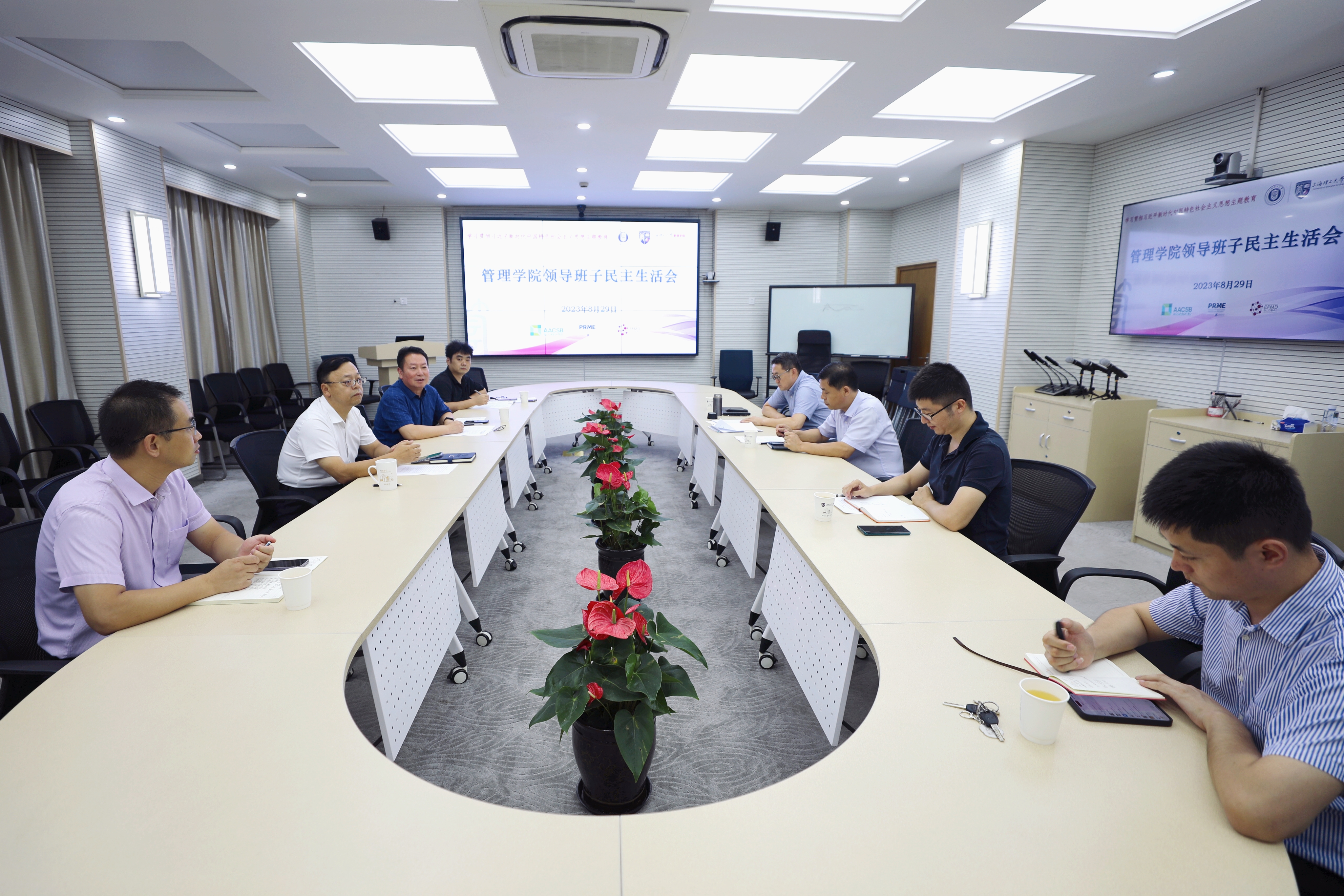 On August 29th, 2023. Business school held a democratic life meeting on studying and implementing the theme education of Xi Jinping Thought on Socialism with Chinese Characteristics for a New Era, to deeply study and implement the spirit of the important speech of the General Secretary of the CPC Central Committee on carrying out theme education, to closely focus on the theme of learning and implementing Xi Jinping Thought on Socialism with Chinese Characteristics for a New Era, to make comparative inspection deeply, and to seriously carry out criticism and self-criticism. Meng Zhilei, member of the third steering group of the university theme education and vice minister of the Organization Department, attended the meeting to guide. Ma Jingbo, secretary of the Party Committee of the business school, presided over the meeting, and members of the Party and Government team of the school attended the meeting.