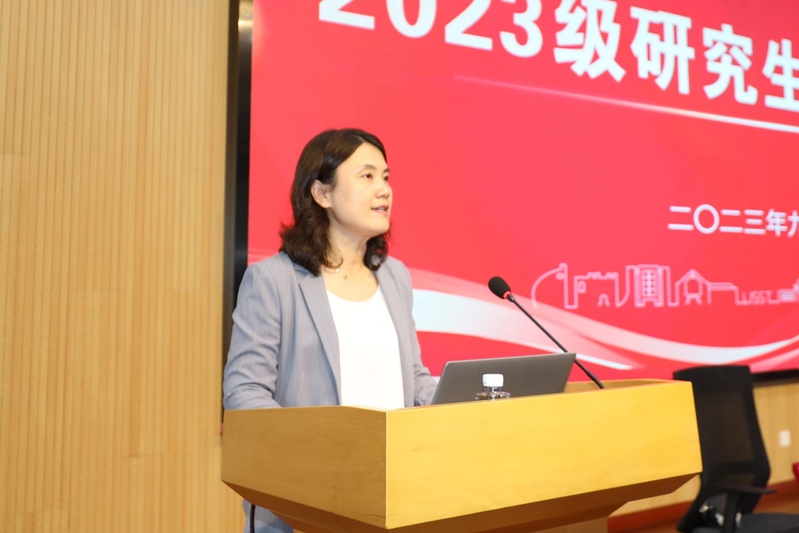The representative of the senior graduate student, Li Bei, a master student in Systems Science enrolled in 2021, shared her learning journey with the new students from three aspects: setting learning goals, maintaining research enthusiasm, and being good at discovering beauty.