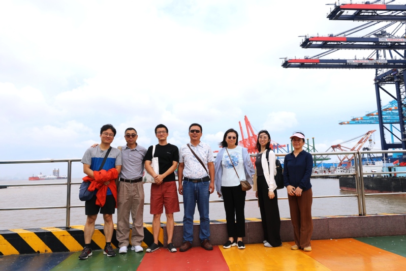 Established in 1992, ZPMC is a famous heavy-duty equipment manufacturer around the world. The Zhenhua Port Machinery Industry Study Base of ZPMC Changxing Branch has been awarded as the Chongming district patriotic education base. During this visit, our faculty members climbed up to the 29th-floor sightseeing platform to overlook the entire factory area: the magnificent quay cranes were arranged along the coastline in sequence. The south zone is where the industrial plants are situated, while the north zone is dedicated to protecting the ecological environment. At quay 0, our faculty visited the large-scale quay bridge and the intelligent manufacturing workshop for large crane box girders, observed the robotic welding workstation inside the girder and the environmental observation station; additionally, they also explored various special equipment like ten thousand DWT vessels.