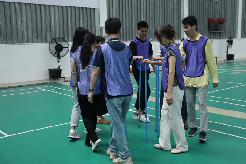 In team collaboration projects, the faculty members had to cooperate and trust each other to complete various tasks. Everyone leveraged the team's strengths to overcome difficulties. They learned the importance of teamwork through the Racing Caterpillar game; the Work Together Drum effectively promoted collaboration and communication among team members; the No Collapsing Forest game cultivated the team's ability to unite, assist, and focus; the Happy Swing enlivened the activity’s atmosphere.