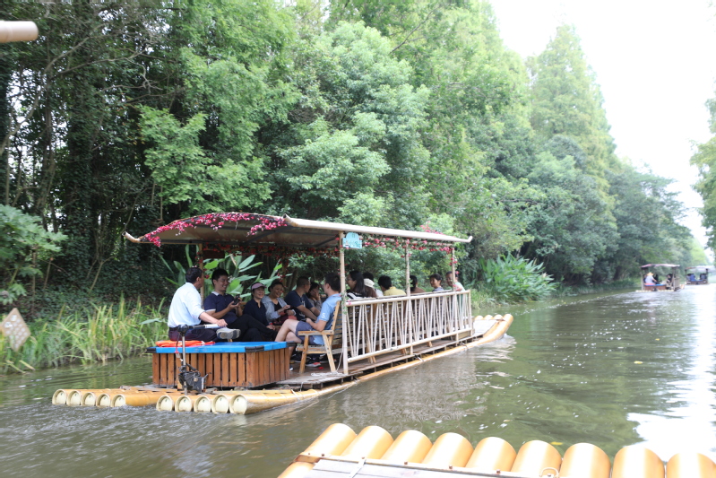 After the ice-breaking and quality development activities, the faculty came to Changxing Island Country Park to take a bamboo raft tour. They were accompanied by park staff who introduced the scenic area. The faculty members enjoyed the beautiful scenery as the bamboo raft slowly moved along.