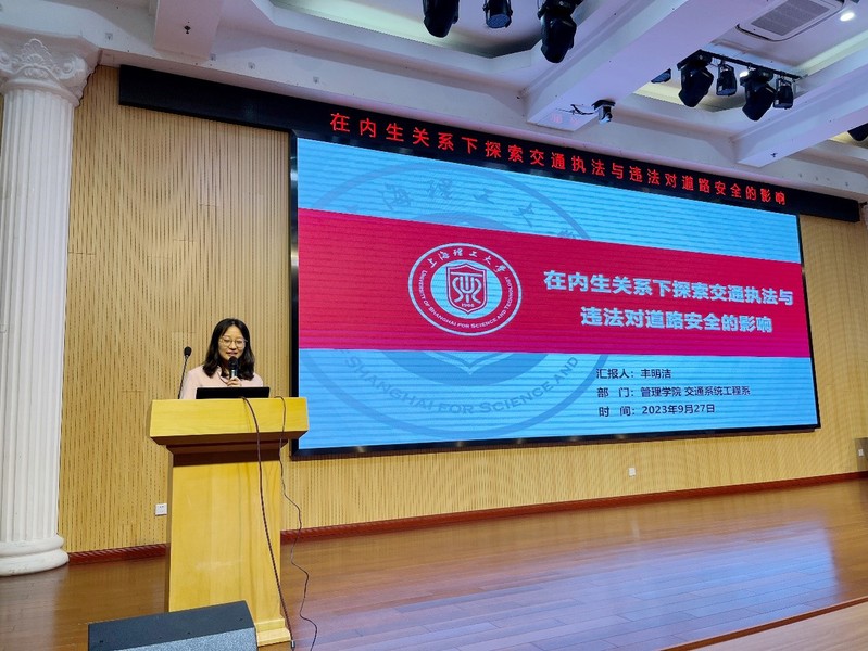 On September 27, Hujiang Economic Management Forum Series (71st) was successfully held in the Lecture Hall of the First Conference Room of the School of Management. Dr. Mingjie Feng gave an academic report entitled Exploring the Impact of Traffic Law Enforcement and Violations on Road Safety under the Endogenous Interrelations. The report was chaired by Dr. Chenqiang Zhu. Dr. Weiwei Liu, director of the Department of Transportation Systems Engineering, Dr. Wu Jingxian, and some postgraduate students attended the report.