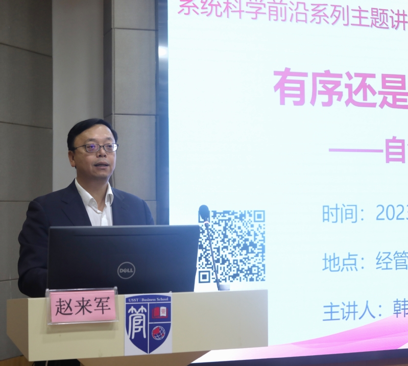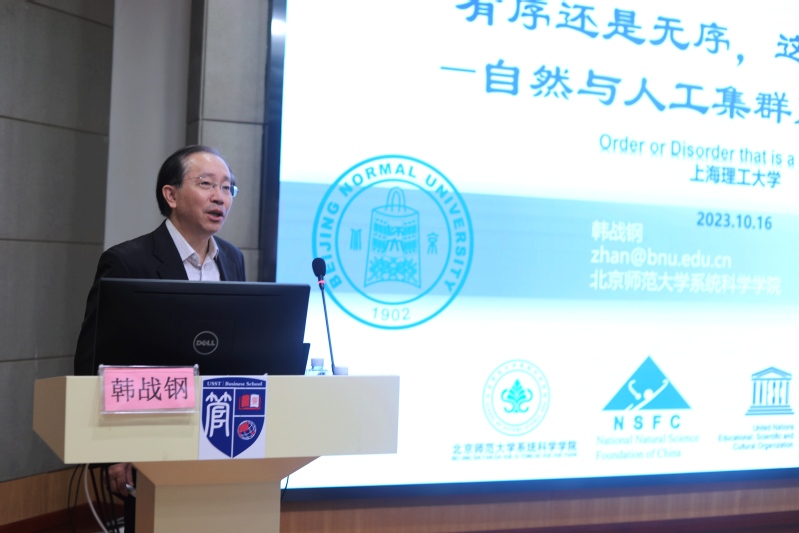 On October 16th, 2023, Prof. Han Zhangang of Beijing Normal University (BNU) was invited to our university to give a seminar entitled Order or disorder, this is a problem: the complexity of natural and artificial cluster systems. This is the third lecture in a series of lectures on the frontiers of systems science of USST. More than 100 faculty and students from systems science and other disciplines attended the lecture. The seminar was presided over by Zhao Laijun, dean of the Business School.