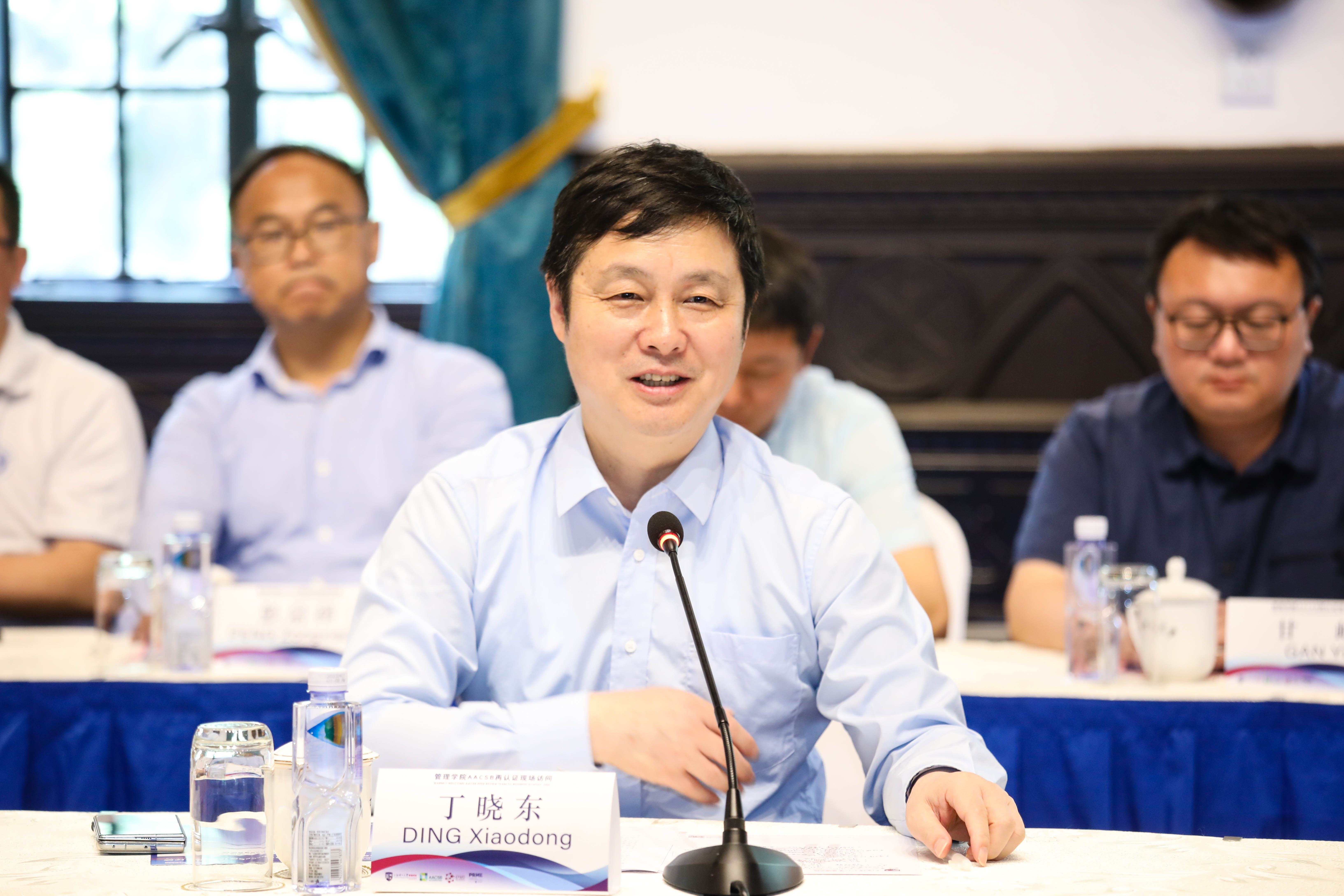 Dean Zhao Laijun introduced in detail the strategy, vision and mission of the Business School and discussed how it aligns with the national strategy and sustainable development. He also highlighted the main progress made since the initial AACSB accreditation in 2018, including the improvement of school-running conditions, the introduction of international high-level faculty, the achievements of scientific research, industry-university-research collaborations and its social impact, as well as the improvement of financial support; Ma Jingbo, secretary of the Party Committee of the Business School, introduced the value transmission, the combination of teaching theory and social issues, the lifelong learning of faculty and students, as well as the growth and development of young faculty. Deputy dean He Jianjia presented on the scientific research strategy, academic influence, social services, the local district-school community building and the globalization of business education; deputy deans Zhang Zheng and Zhao Jing, along with deputy secretary of the Party Committee Pu Yingying presented their respective responsibilities, highlighting the continuous improvement of learning quality guarantee, curriculum management, teaching quality control and influence; Gao Yan, Ye Chunming, Zhang Yongqing and others reported and exchanged views on the reform of many important mechanisms such as scientific interaction, interdisciplinary cooperation, teaching method reform, and performance appraisal.