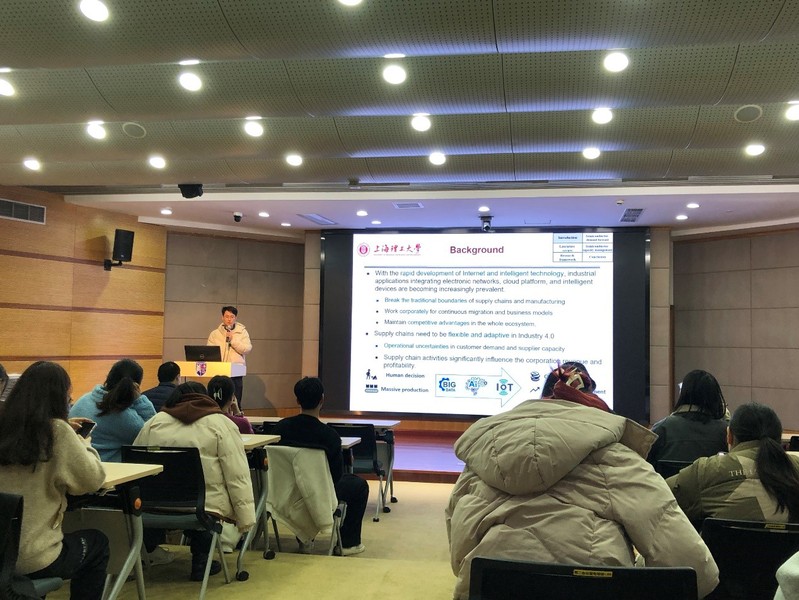 On March 6th,the Hujiang Economics and Management Forum Series (87th Session) was successfully held at the Lecture Hall on the fourth floor of Building A of the Business School. The event featured a scholarly presentation titled “Demand Forecast and Capacity Management Under Uncertainty for Semiconductor Supply Chain Resilience” delivered by Fu Wenhan, a lecturer of the Department of Industrial Engineering. More than 50 teachers and students from relevant disciplines of the Business School participated in this report.