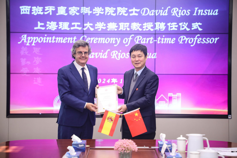 And then Ding Xiaodong, on behalf of USST, presented the appointment letter to David Rios Insua.