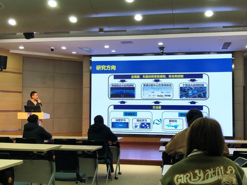 At the beginning of the lecture, Dr. Liang briefly explained the mainstream methods of lane-changing decision and trajectory planning, and focused on the research content of the joint optimization of lane-changing decision and trajectory for CAV based on hierarchical reinforcement learning. The idea frameworks of the DDQN reinforcement learning model in the decision layer and the CARLA simulation model in the trajectory layer are explained respectively, and the two-layer model is trained alternately using the time-asynchronous difference algorithm to achieve good control results.