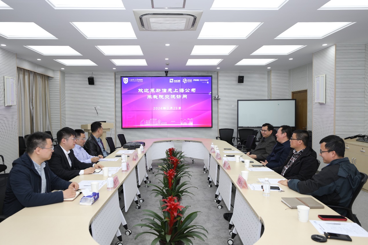 On March 28, a delegation from LES Information Technology Co., Ltd. Shanghai (LES Info Shanghai) visited the Business School. Yu Jichao, deputy general manager of LES Info Shanghai, and Yang Qiming, partner of CTTIC Fund came to exchange. Ma Jingbo, secretary of the Party Committee of USSTBS, Gu Changgui, director of the Department of Systems Science, Liu Weiwei, director of the Department of Transportation System Engineering, and Fang Zhiming, secretary-general of the School of Intelligent Emergency Management (SIEM), attended the exchange meeting.