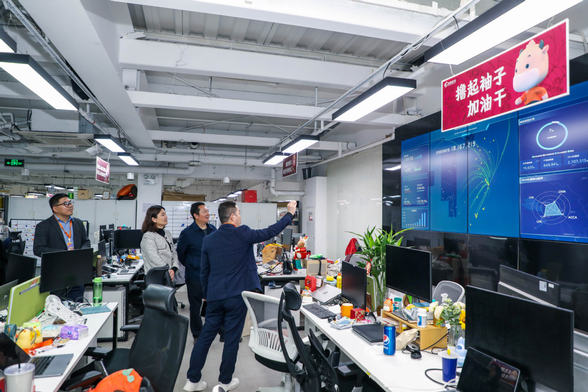 The delegation was firstly taken on a tour of Golden Education's headquarters, including the Product R&D Center, the Internet Technology Center, the Student Consultation Center, the Student Service Center, and the Party Building Center. This tour helped the delegation gain a deeper insight into Golden Education's business strategy, scale, and scientific & technological advancements.