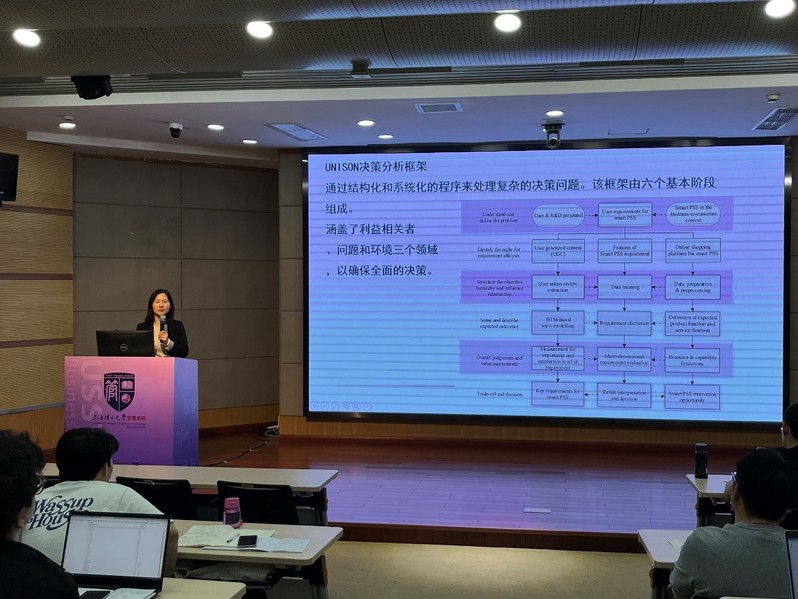 On May 9, The Hujiang Economics and Management Forum Series (104th Session) was held in the second meeting room on the fourth floor of Building A. Professor Geng Xiuli of the Department of Industrial Engineering gave a lecture entitled Research on Data-Driven Design of Smart Product Service System.