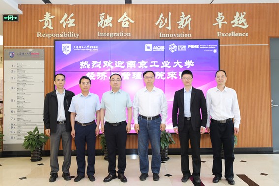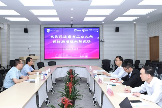 On the morning of 31 May, a delegation from the School of Economics & Management of Nanjing Tech University (NTU) visited the Business School. Yao Shanji, Dean of the NTU School of Economics & Management, Zhuang Lei, Dean’s assistant for Teaching and Director of the Department of Finance came to exchange. Zhao Laijun, Dean of the Business School, Vice Dean Zhao Jing, Zhang Qinglong, Director of the Department of Finance, and Shu Yiming, Director of the Educational Affairs Office, received the delegation and participated in the exchange meeting.