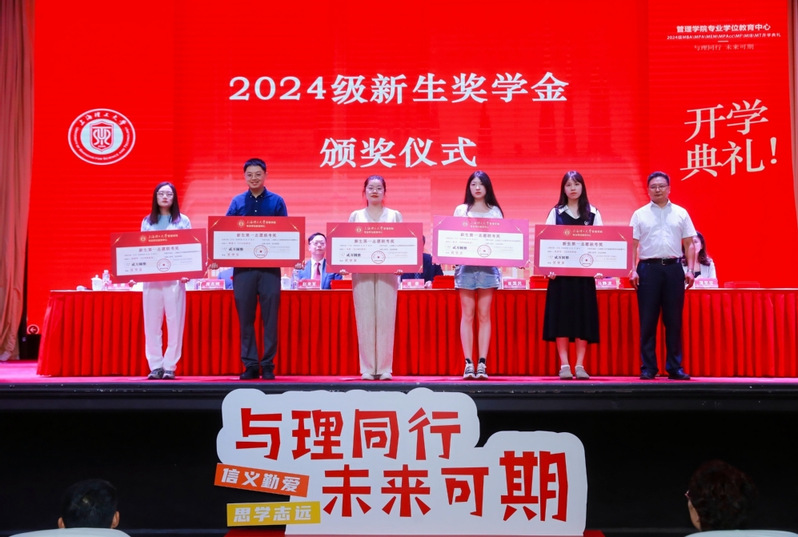 To attract more exceptional applicants for professional degree programs such as USST's MBA, MPA, MEM, and MPAcc, USSTBS has launched a series of scholarships including the Sincerity Scholarship, Alumni Scholarship, Freshmen Scholarship, Competition Scholarship, and Study Abroad Scholarship. These initiatives are designed to offer multi-level and full-coverage support through various scholarship opportunities. Ma Jingbo announced the Decision on Awarding the 2024 Freshmen Scholarships of the PDEC , and the awarded students were honored during the ceremony. He also expressed his expectations for the students to work diligently and contribute to the betterment of the country.