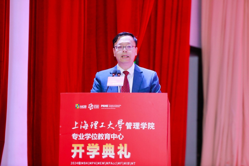 On the afternoon of September 8th, the Professional Degree Education Center (PDEC) of USSTBS held the 2024 Opening Ceremony for new graduate students. Sheng Chun, Deputy Secretary of the Party Committee and Vice President of USST, Cui Guomin, Executive Vice Dean of the Graduate School; and the leadership team from USSTBS, including Zhao Laijun, Dean and Managing Director of the PDEC, Ma Jingbo, Secretary of the Party Committee, Zhang Zheng, Vice Dean and Vice Director of the PDEC, Fang Zhiming, Vice Dean, Pu Yingying, Vice Secretary of the Party Committee, along with PDEC’s program directors, faculty representatives, and nearly 500 new graduate students. The ceremony was hosted by Zhang Zheng.
