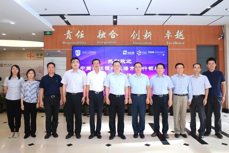 On the afternoon of September 11th, a delegation from the China Construction Bank (CCB) Shanghai Branch visited the Business School. The representatives included Shen Yiming, General Manager of Human Resources Department (Party Committee Organization Department), Wang Hui, Senior Manager of the Training Centre, Yu Hua, Deputy General Manager of Institutional Business Department (Rural Revitalization Finance Department), Zhang Yibin, Vice President of Yangpu Sub Branch and Chen Jie, President of Pingliang Road Sub Branch. Dean Zhao Laijun, Secretary of the Party Committee Ma Jingbo, as well as representatives from the Department of Finance and the CCB Class received the delegation and attended the exchange meeting. Zhao Laijun presided over the meeting.