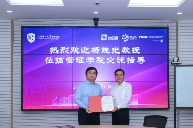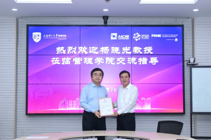 On the morning of 26th September, Professor Yang Xiaoguang was appointed as the honorary dean and distinguished professor of USST Smart Urban Mobility Institute. Prof. Yang is a senior expert in the field of transportation engineering in China, who also served as deputy director of the Transportation Teaching Committee and director of the Transportation Engineering Sub-Teaching Committee under the Ministry of Education.Sheng Chun, deputy secretary of the Party Committee and vice president of USST, as well as representatives from USSTBS, including Zhao Laijun, dean, Zhao Jing, vice dean, Han Yin, academic leader of the Transportation Engineering discipline, Liu Weiwei, director of the Department of Transportation System Engineering, related faculty and students, attended the appointment ceremony. The meeting was presided over by Zhao Jing.