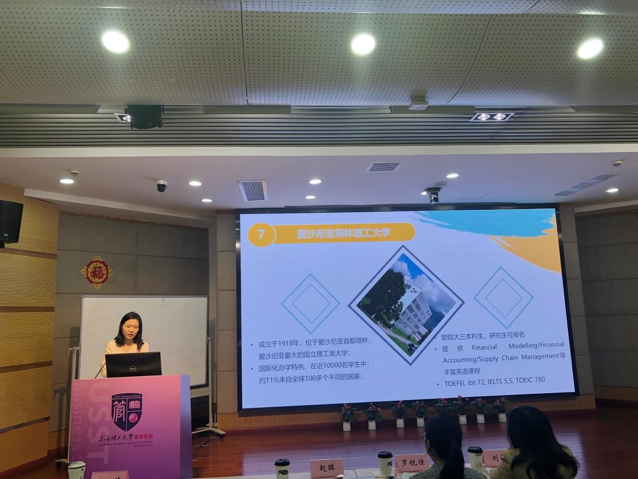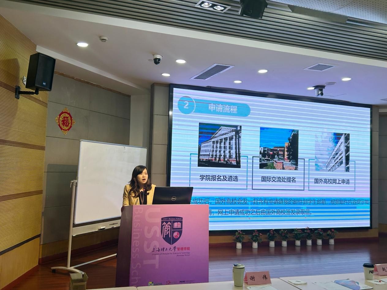 On March 27, the information session on Overseas internship and exchange programs with top universities and enterprises was held at Business School. The event received support from USST International Affairs Office and partner institutions. Liu Weiwei, Vice Dean of the Business School presided over the session.
