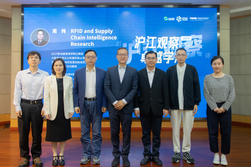 On May 9, Professor Zhou Wei from ESCP Business School, Director of the MSc in Big Data and Business Analytics program and Visiting Professor at the Business School, University of Shanghai for Science and Technology (USST), was invited to deliver a lecture titled RFID and Supply Chain Intelligence Research. The lecture was hosted by Zhao Laijun, Dean of the School and Director of the Professional Degree Education Center(PDEC), with Vice Dean Liu Weiwei, Comprehensive Office Director Meng Chenli, as well as faculty and students in attendance.