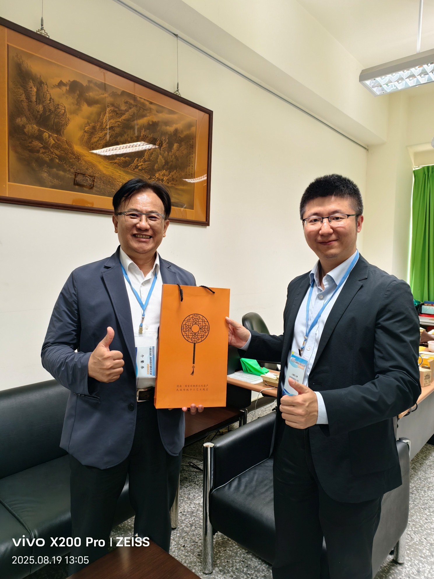 Following the symposium, Zhao Jing exchanged commemorative gifts with Chen Xuetai (Chairman of Taipei Transportation Safety Promotion Association); Zhang Xinfu (Director of Taoyuan City Government Transportation Bureau); Lv Shitong (Dean of College of Tourism and Transportation) and Lin Chengwei (Deputy Dean) of Kainan University.