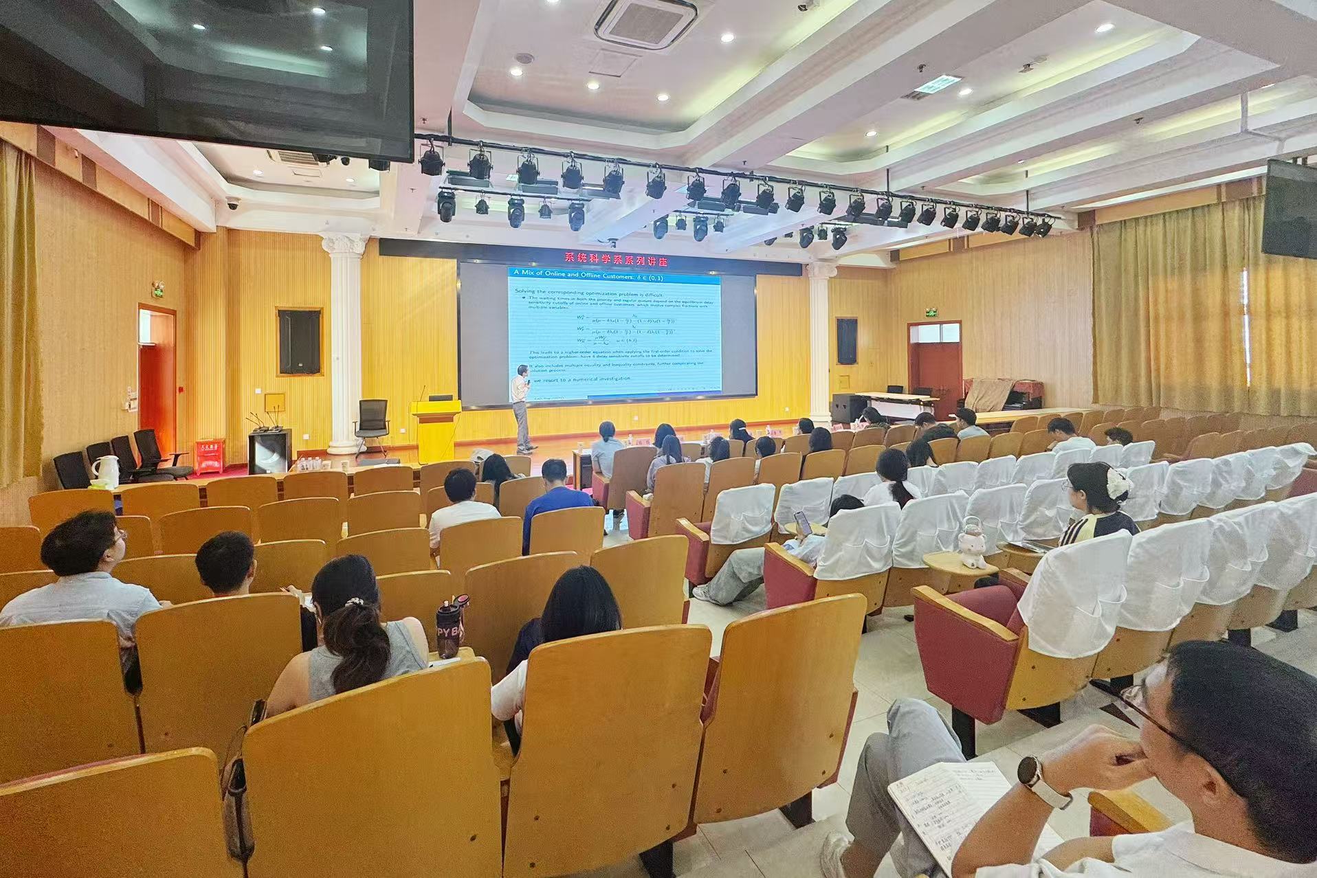 On the afternoon of September 22, the Department of Systems Science at the Business School hosted a special lecture titled Advance Selling and Upgrading in Priority Queues, delivered by Professor Cao Ping from the School of Management, University of Science and Technology of China (USTC). The lecture was chaired by Associate Professor Chen Yanting of the Department of Systems Science, with over 30 faculty members and students in attendance.